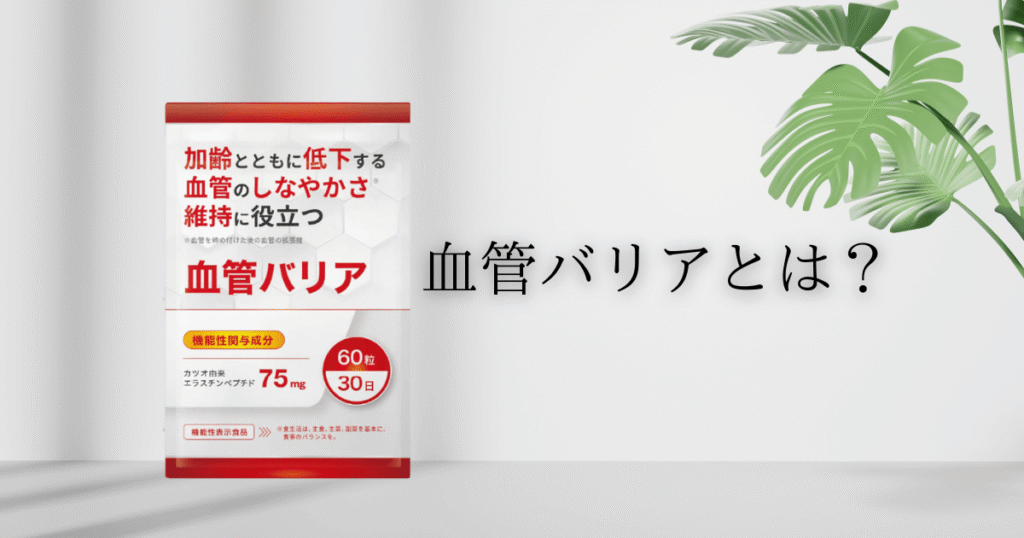 血管バリアは、カツオ由来エラスチンペプチドを機能性関与成分とし、加齢とともに低下する血管のしなやかさの維持に役立つことが報告されている機能性表示食品です。