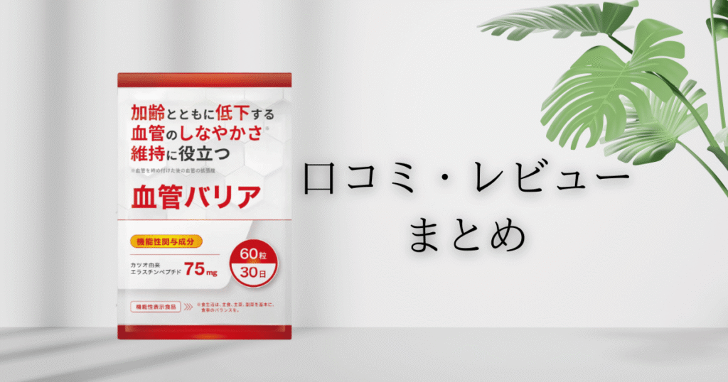 血管バリアは、「数値対策」だけでなく、年齢に応じた血管ケアという視点で選びたい方に向いている商品といえそうです。